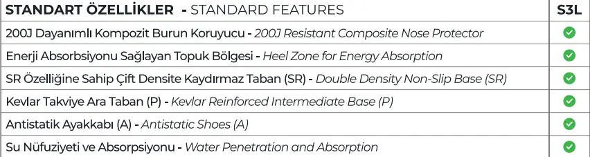 STOUT EPL 5463, SR kaydırmaz taban teknolojisi ile donatılmıştır. Bu özellik, kayma riskini minimize ederek, özellikle endüstriyel alanlarda güvenli bir yürüyüş deneyimi sağlar.